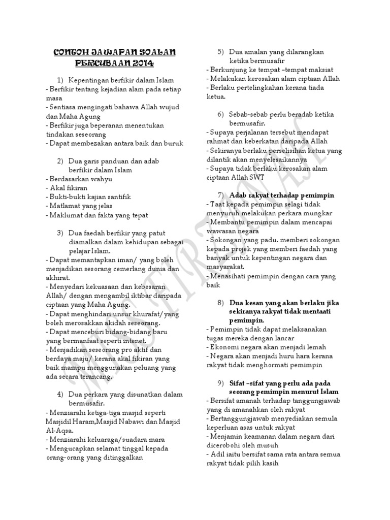 Contoh Jawapan Soalan Percubaan 2014 Pendidikan Islam Pdf